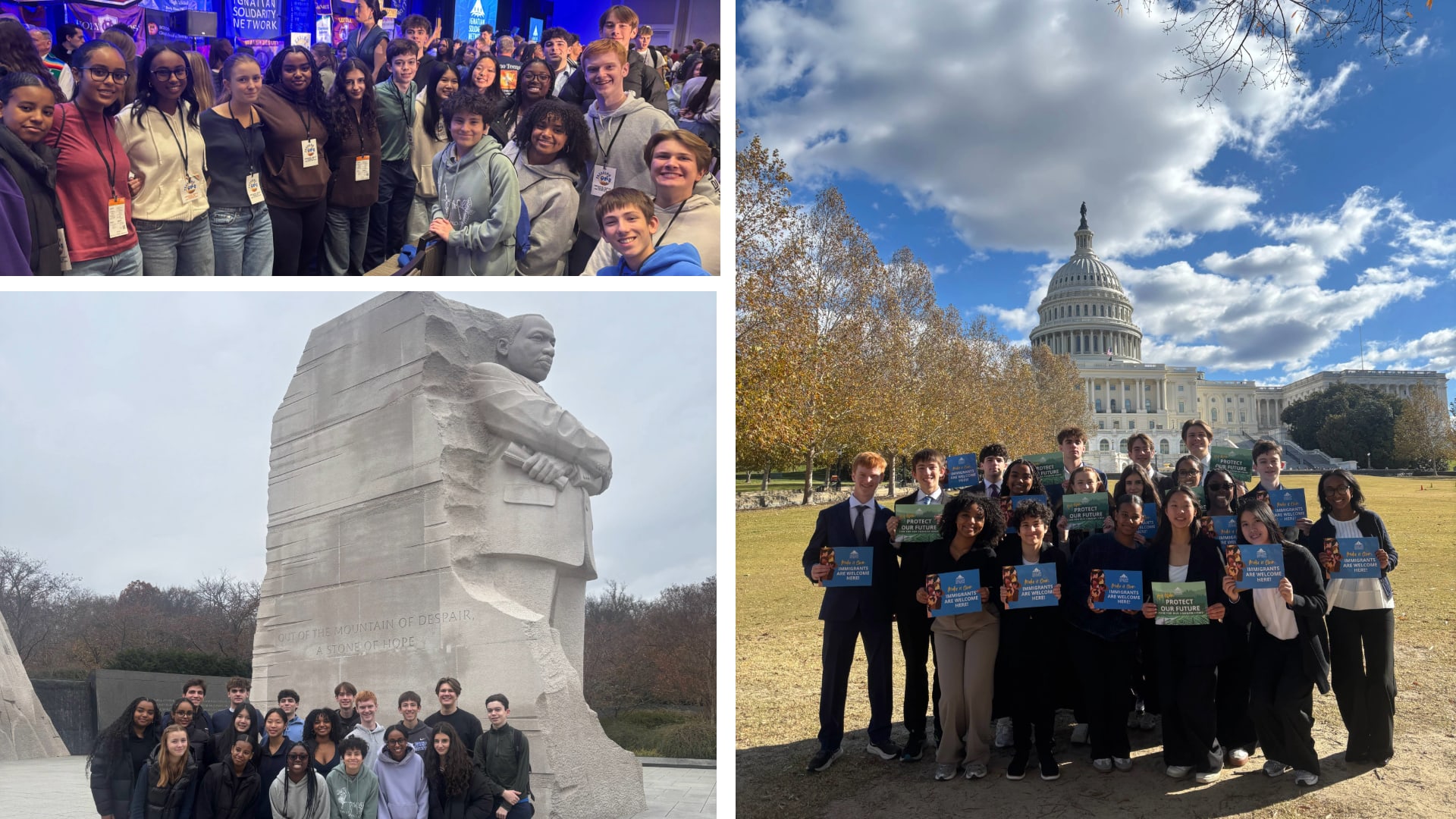 Seattle Prep’s delegation to the annual Ignatian Family Teach-in for Justice (IFTJ) returned last Monday after a packed weekend in our nation’s capitol. This year, 18 students and 4 faculty attended the IFTJ with over two thousand other students from dozens of Jesuit high schools, universities, and ministries across the country. The theme of the teach-in this year was "Pressing On," and powerful keynote speakers and breakout sessions focused on this theme. The aim of the conference is for participants to learn about important issues and pathways to a more just world, to connect with other students across the Jesuit Network who share their passions, and to be inspired to live out a faith that does justice. The conference culminates in an advocacy day where Prep students lobbied on issues they care about in meetings with staffers from Washington’s congressional delegation. We are excited to see how this group of students continues to cultivate their commitment to leadership, justice, and advocacy back home at Prep!